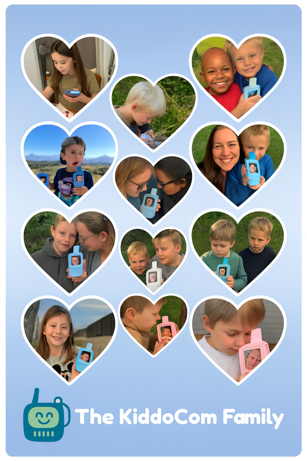 “KiddoCom Walkie Talkies make playtime exciting and easy, letting kids see and talk to each other while they explore.